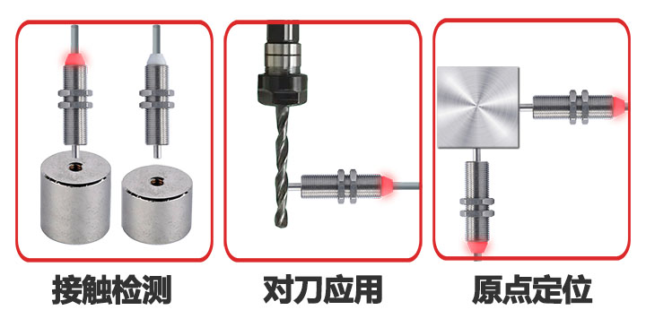 ECOTTER接觸式傳感器S2-CS系列擁有超高重復精度0.001mm,0.6N力即可操作,動作前的移動PT0.5-0.9mm,常應用于接觸檢測、原點定位、車床對刀等場景。