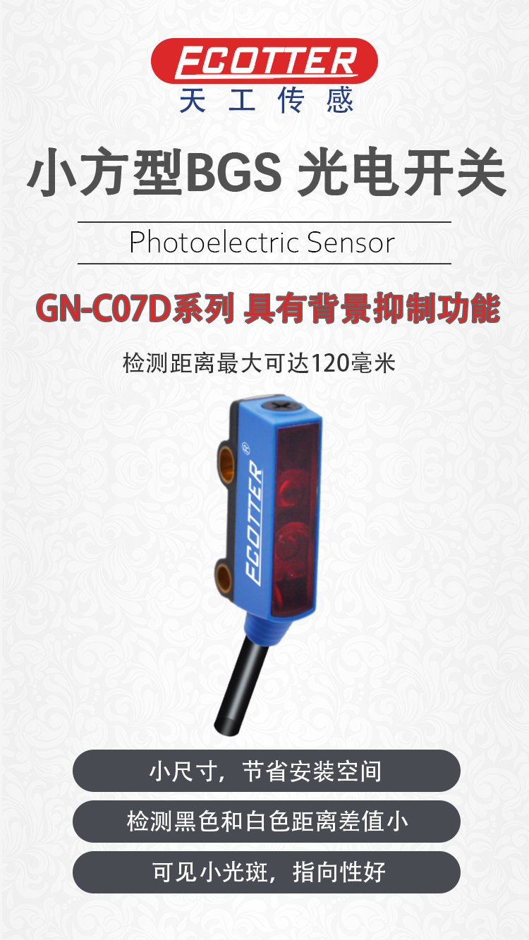 小方型光電設(shè)計(jì)尺寸小巧,可以靈活安裝在緊湊的空間內(nèi)。即裝即用的簡(jiǎn)單使用方式往往可以提供穩(wěn)定的檢測(cè)結(jié)果。GN-C07系列光電開(kāi)關(guān),采用了背景抑制原理功能更強(qiáng)。