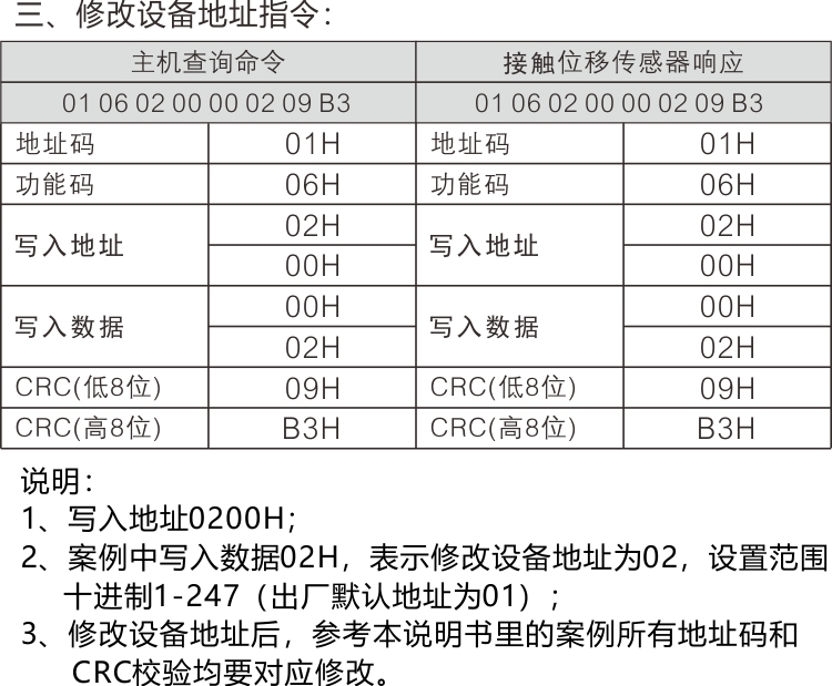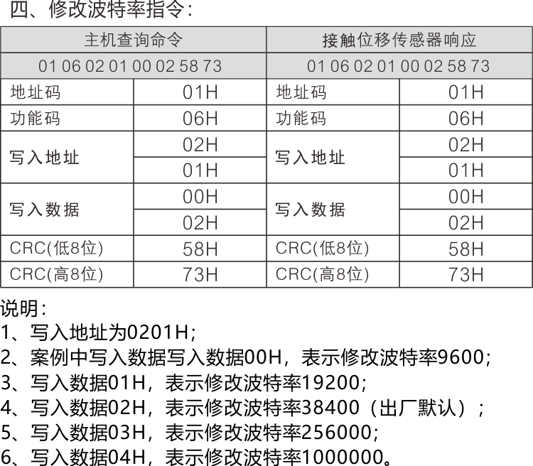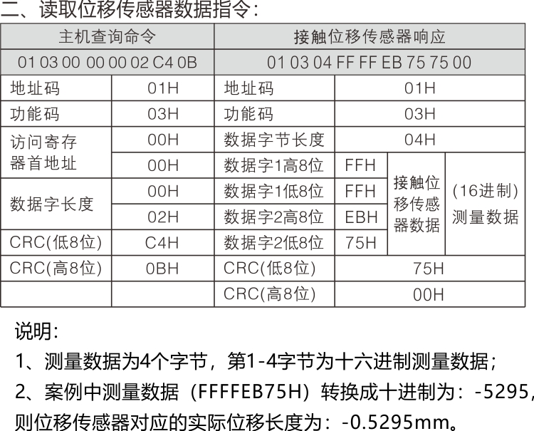 這里我們來看一下,TSD系列的接觸位移傳感器的通訊指令: