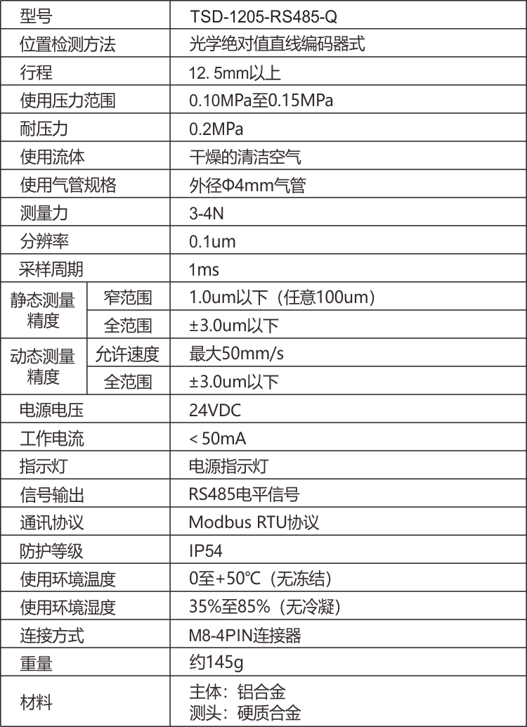 ECOTTER 氣動型 接觸位移傳感器 TSD-1205-RS485-Q 具有高速返回數(shù)據(jù)的特點,達每秒1000次的數(shù)據(jù)刷新頻率,可支持動態(tài)測量。常用于測高、測厚、測平整等。