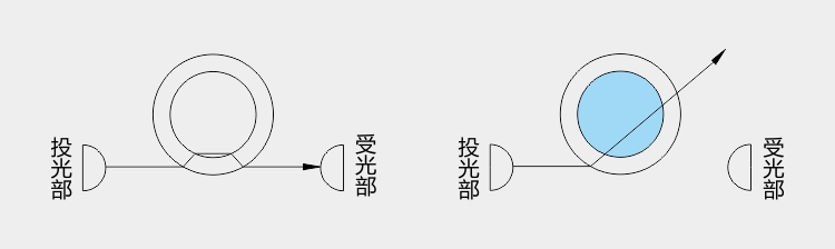②如導(dǎo)管內(nèi)有液體,投光部發(fā)出的光將穿透液體,不進入受光元件。(遮光狀態(tài))