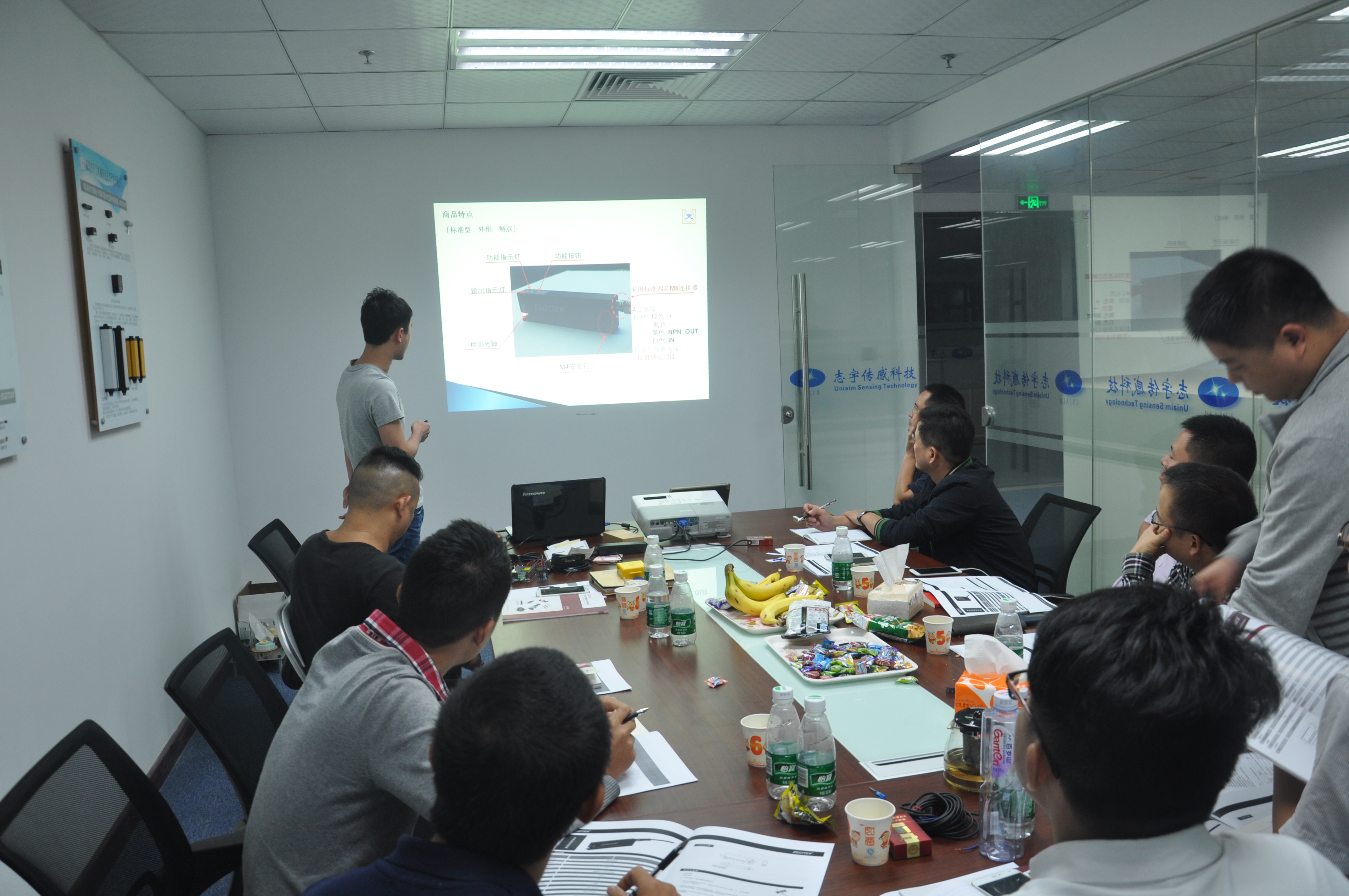 大會(huì)首先由公司總經(jīng)理?xiàng)顭ㄓ顚?duì)所有參會(huì)人員進(jìn)行了營(yíng)銷及公司文化方面的培訓(xùn),并由研發(fā)部的三位研發(fā)人員進(jìn)行了產(chǎn)品方面的培訓(xùn)。主要就公司三款新品:激光位移傳感器、標(biāo)簽傳感器及機(jī)器視覺(jué)進(jìn)行了全方位的講解并現(xiàn)場(chǎng)進(jìn)行功能演示。