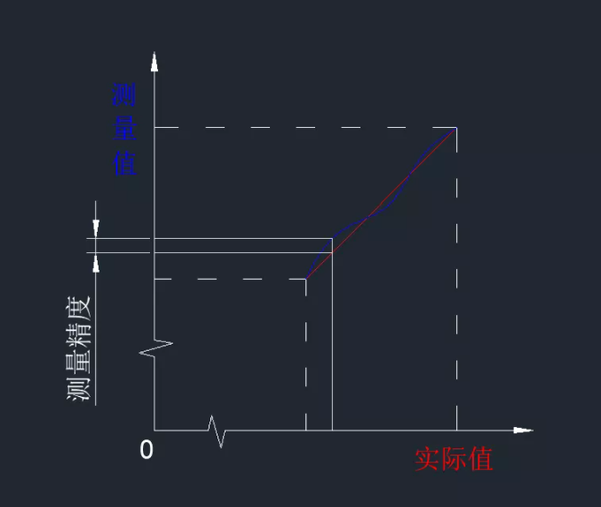 理想狀態(tài)下,物體實(shí)際位移值,與傳感器測(cè)量值,呈直線變化關(guān)系;但實(shí)際上傳感器的測(cè)量值與物體實(shí)際位移值會(huì)有偏差,該偏差的最大值稱(chēng)為精度。