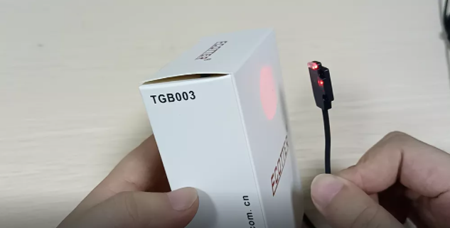 以GN-04NT-500為例,對射型的傳感器一端為發(fā)射端,一端為接收端,接收端接收到發(fā)射端的光,沒有輸出;當(dāng)由被測物擋住發(fā)射光,接收端沒有接收光時,信號輸出。