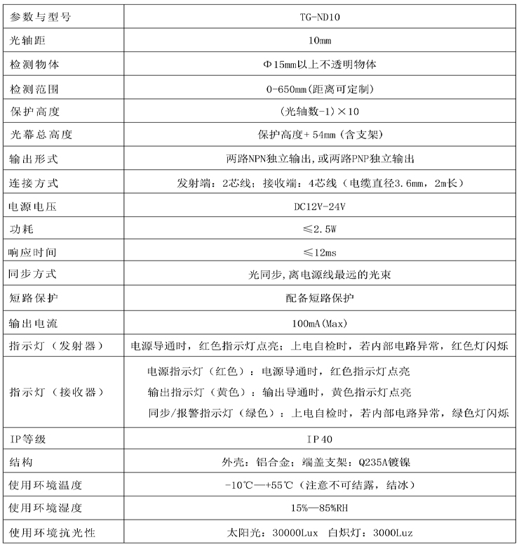 四級(jí)安全光幕超薄型TG-ND-10系列