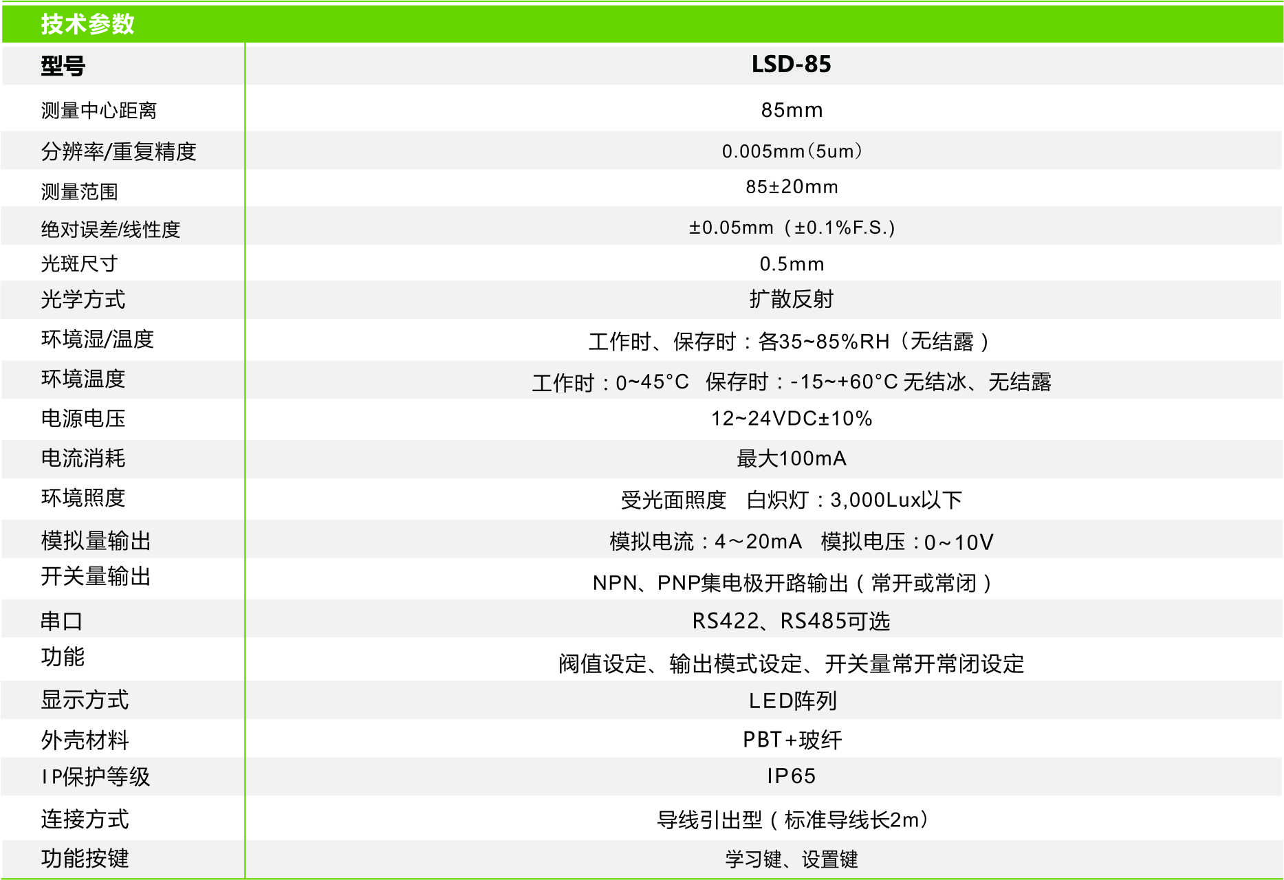 首頁 > 產(chǎn)品中心 >>傳 感 器 >> 激光位移傳感器 >> 激光位移傳感器 LSD-85